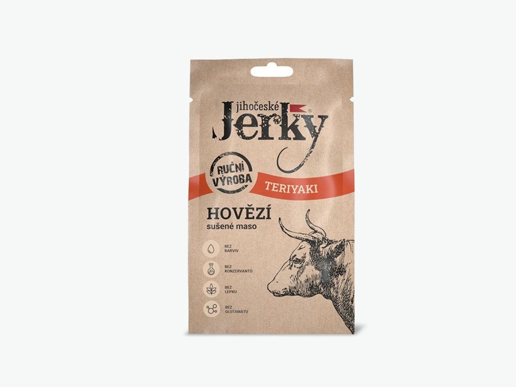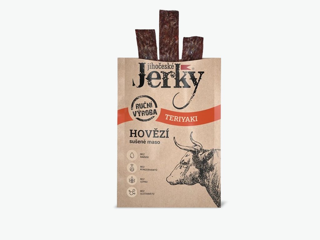 Hovězí jerky teriyaki spojuje poctivou kvalitu masa z českých chovů s výraznější chutí inspirovanou teriyaki marinádou. Šetrné sušení zachovává nutriční hodnoty i strukturu masa, zatímco lehce nasládlá chuť dodává produktu atraktivní charakter.