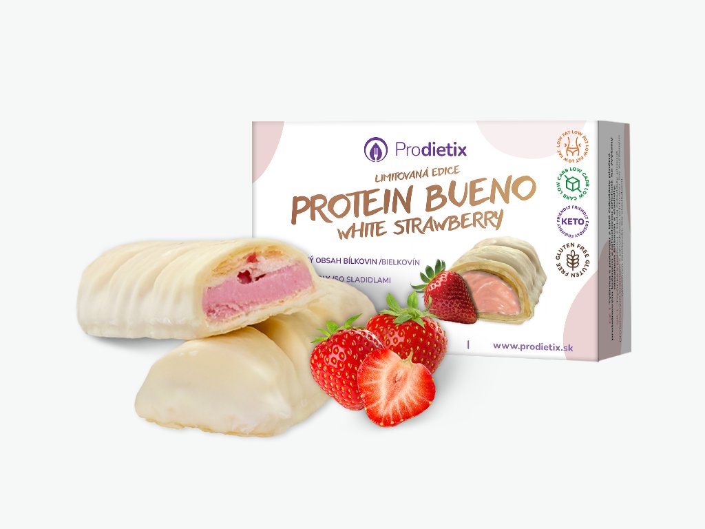 S Protein Bueno White Strawberry si můžete být jisti, že každé sousto je krokem k lepšímu zítřku. Dopřejte si chvíli pro sebe s tyčinkou, která chutná skvěle a zároveň pečuje o vaše tělo. Kupte si ji ještě dnes a nechte své chuťové buňky oslavit každé kousnutí!