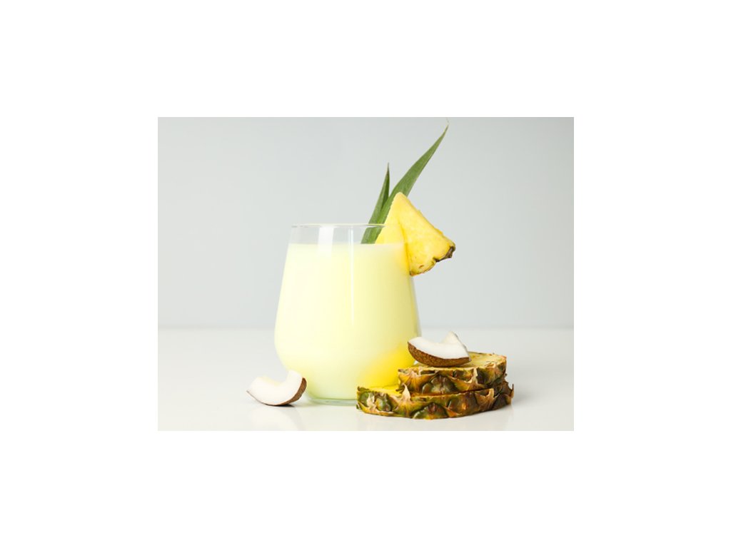mléčné bílkoviny (slunečnicový lecitin (E322)), regulátor kyselosti (kyselina citronová (E330), citrát sodný (E331), kyselina jablečná (E296)), prášek z ananasové šťávy (ananasový koncentrát (40%), maltodextrin, kyselina citronová (E330), kokosové mléko (kokosové mléko, maltodextrin, MLÉČNÝ protein), modifikovaný škrob (E1414), protispékavá látka (uhličitan hořečnatý (E504)), příchutě, parafínový olej, sladidla (sukralóza (E955), acesulfam (E950))