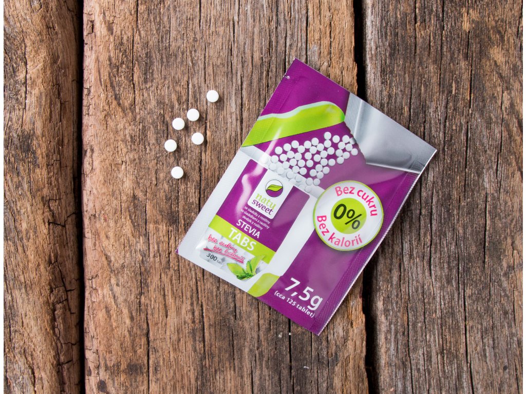 Tablety sladila z rosliny stévie balené v sáčku. 125 ks tablet.